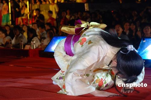 10月16日晚,2008第二屆桂林國際大學生服飾文化藝術(shù)節(jié)在廣西師范大學王城校區(qū)舉行了“我行我秀”大學生自搭服飾外國留學生專場比賽。數(shù)十名來自印度尼西亞、日本、俄羅斯、韓國、緬甸、泰國等國家的在讀留學生參加了比賽。10月18日晚將在此舉行中國大學生自搭服飾專場決賽。中新社發(fā) 歐惠蘭 攝
