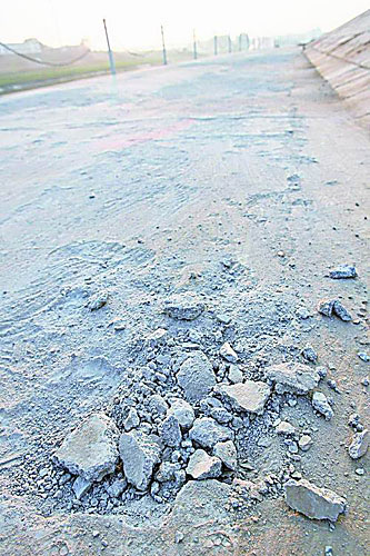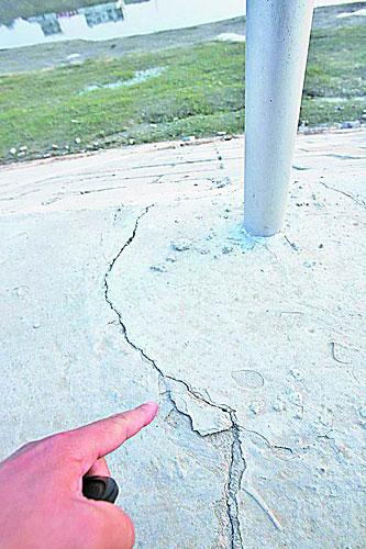 河省防汛嚴(yán)峻程度上,黃河排在第一位,沙潁河居第二位。周口地區(qū)的沙潁河段為“豆腐腰”,為讓“豆腐腰”挺起“腰桿”,國家對(duì)沙潁河近期防洪按20年一遇標(biāo)準(zhǔn)進(jìn)行治理。令人驚詫的是,沈丘縣城區(qū)沙潁河段剛完工的防洪堤壩“弱不禁風(fēng)”,一場雨竟沖毀了坡長為48個(gè)臺(tái)階、長約200米的防洪堤壩,防洪堤肩最深垂直坍陷2米,防洪墻下的灰土襯層,用腳輕輕一踩就粉碎,總長不到兩公里、寬3米的防洪堤肩,裂縫縱橫。