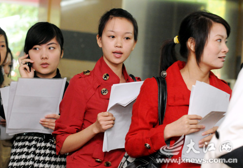 10月26日,首次來江西招聘國(guó)際航空小姐的新加坡國(guó)際航空互聯(lián)會(huì)對(duì)400余名女孩進(jìn)行了入圍面試。記者在現(xiàn)場(chǎng)看到,進(jìn)入面試的應(yīng)聘者必須用英文填寫個(gè)人簡(jiǎn)歷,在面試過程中,要全程用英語交流。一位來自南昌航空大學(xué)的大四學(xué)生告訴記者,她們此次有6名同學(xué)前來面試,但進(jìn)入復(fù)試的只有兩人,其余四人都卡在英語關(guān)和反應(yīng)能力上。