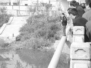 27日上午9點(diǎn)多,拖板橋南側(cè)站滿了看熱鬧的市民。大家都扒在橋欄桿上,向河里探頭張望,一個(gè)二十多歲的小伙子翻過橋欄桿,站到臨河四五米的管道上釣魚。這條黃色的管道直徑只有三十厘米,圓溜溜的,很難掌握平衡,但小伙子毫不在意,拿著一根魚竿,目不轉(zhuǎn)睛地盯著河面。
