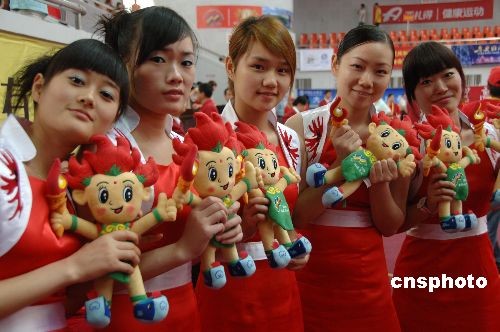 十月三十日,在福建泉州石獅市舉行的第六屆全國農(nóng)運(yùn)會(huì)舞龍舞獅比賽頒獎(jiǎng)現(xiàn)場(chǎng),等待進(jìn)行頒獎(jiǎng)儀式的禮儀小姐身著富有中國情調(diào),色彩鮮麗的禮儀服飾令人眼前一亮。福建泉州石獅市有“服裝城”之稱,目前已躋身中國十大服裝批發(fā)市場(chǎng)之一。中新社發(fā) 鄭祚聲 攝