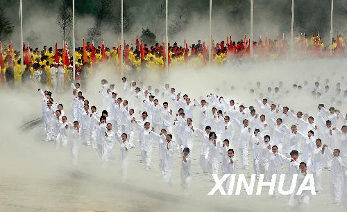 10月30日,太極拳愛好者在表演太極拳。當(dāng)日,第三屆世界傳統(tǒng)武術(shù)節(jié)系列活動(dòng)之一——“走進(jìn)武當(dāng)”萬人舞太極在武當(dāng)山風(fēng)景區(qū)舉行。來自美國、英國、俄羅斯、澳大利亞和中國等69個(gè)國家和地區(qū)的近2000名武術(shù)愛好者,共同欣賞了這一大型武術(shù)表演。新華社記者余國慶攝