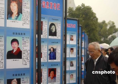 2008年11月1日,首屆中國(guó)尋親大會(huì)在武林廣場(chǎng)舉辦,活動(dòng)吸引了來(lái)自國(guó)內(nèi)各地的數(shù)千名尋親者。據(jù)悉,浙江省公安廳、省民政廳等相關(guān)權(quán)威部門(mén)到現(xiàn)場(chǎng)并為有需要的尋親者做DNA檢測(cè)。活動(dòng)現(xiàn)場(chǎng)還安排了認(rèn)養(yǎng)、助養(yǎng)等活動(dòng)。據(jù)悉,被認(rèn)養(yǎng)的孩子中也有來(lái)自汶川地震災(zāi)區(qū)的孤兒。中新社發(fā) 引煒 攝