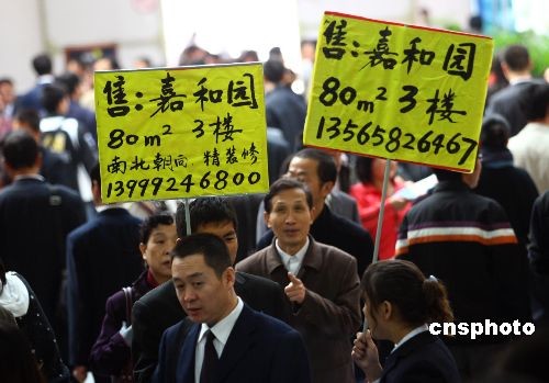 11月1日,新疆(秋季)房地產(chǎn)人居博覽會(huì)在烏魯木齊召開,眾多當(dāng)?shù)鼐窐潜P齊聚博覽會(huì)。由于近期房價(jià)回落,本屆房產(chǎn)博覽會(huì)吸引了大批準(zhǔn)備購房的市民前來一探究竟。圖為博覽會(huì)現(xiàn)場一些房產(chǎn)公司工作人員手舉“二手房廣告”在購房者中間穿梭。中新社發(fā) 劉新 攝
