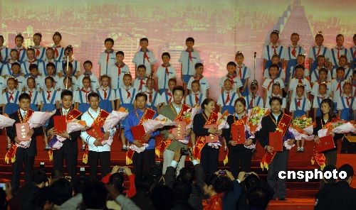 11月2日是第二個重慶農民工日,當地舉行“第三屆重慶十佳農民工頒獎”儀式,集體表彰過去一年為重慶經濟社會發(fā)展做出杰出貢獻的農民工代表。圖為獲獎農民工集體合影。中新社發(fā) 郭晉嘉 攝