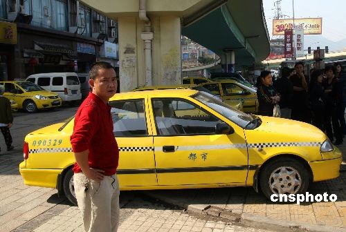 11月3日,重慶市交委副主任梁培軍通報(bào)稱,當(dāng)日清晨5時(shí)30分,重慶主城部分出租車因受阻不能正常營(yíng)運(yùn),給當(dāng)?shù)厝罕姵鲂性斐刹恍±щy。重慶公安機(jī)關(guān)調(diào)查發(fā)現(xiàn),此次事件是有部分出租車駕駛員通過攔截上路出租車輛、損壞車輛零部件(車頂燈、后視鏡等)等方式,阻止其他出租車上路營(yíng)運(yùn)。據(jù)稱,此次有人阻撓出租車正常營(yíng)運(yùn),主要是由于出租車企業(yè)與駕駛員利益分配出現(xiàn)矛盾;部分出租車駕駛員認(rèn)為,目前出租車租價(jià)結(jié)構(gòu)不合理,等時(shí)費(fèi)過低;重慶出租車“加氣難”現(xiàn)象未得到徹底解決等原因。截止16時(shí),重慶主城已有1000余輛出租車恢復(fù)營(yíng)運(yùn)。中新社發(fā) 郭晉嘉 攝