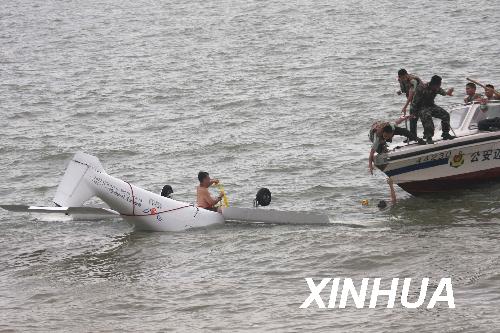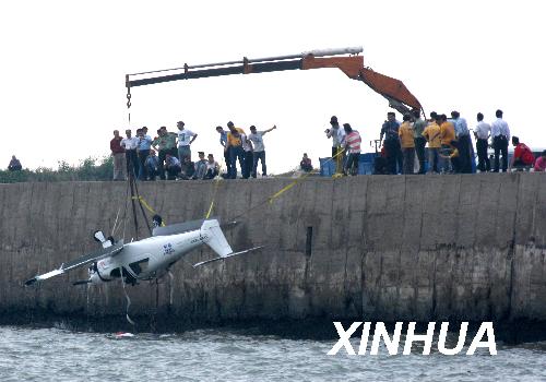 11月5日,一架小型飛機(jī)在珠海進(jìn)行試飛時(shí)墜入海中,機(jī)上唯一一名飛行員在事故中左膝受輕傷。失事小型飛機(jī)的型號(hào)為“MCR4S”,頭尾長約8米,翼展約5米,是珠海鷹洲飛機(jī)制造有限公司與法國DYNALOE公司聯(lián)合研制的單引擎四座小型民用飛機(jī)。5日上午10時(shí)30分,一名法國工程師單獨(dú)駕駛該飛機(jī)從珠海市九洲直升機(jī)場(chǎng)起飛,飛行約40分鐘后,于11時(shí)10分左右墜入海中。新華社發(fā)(席湖 攝)