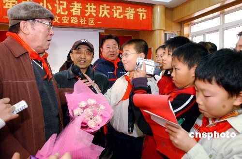 11月7日,沈陽市新聞工作者協(xié)會的十余名沈陽人民廣播電臺的離退休新聞工作者與文安路社區(qū)的小記者舉辦了“老記者牽手小記者共慶記者節(jié)”活動,老新聞工作者勉勵小記者用鏡頭和紙筆,去捕捉家鄉(xiāng)的新人新事新面貌,共敘祖國的繁榮富強(qiáng),以此來迎接11月8日中國第九個記者節(jié)。中新社發(fā) 羅瀾 攝