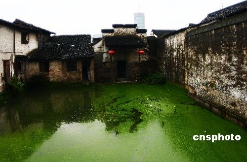11月8日下午,位于浙江紹興市區(qū)的王羲之故宅前墨池一片綠色,據了解,這是由于藍藻和浮萍的侵襲而形成的。中新社發(fā) 李瑞昌 攝