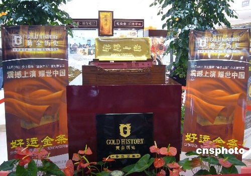 2008年11月10日,一根重達(dá)100公斤的大金條在北京菜百商場(chǎng)亮相。據(jù)悉,這根入選上海大世界基尼斯紀(jì)錄的金條歷時(shí)半年制作而成,如此重的身價(jià)在貴金屬制造史上堪稱“金條王”。中新社發(fā) 玉龍 攝