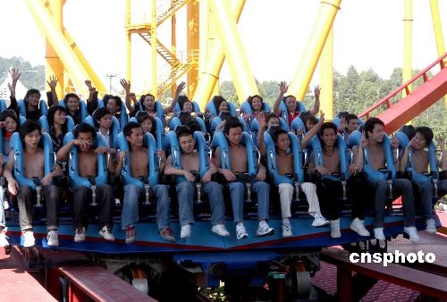 11月11日所謂“光棍節(jié)”,對于單身人士來說是一個特別的節(jié)日,廣州長隆歡樂世界為“男女光棍”舉辦別開生面的單身派對活動——“脫光勇士”挑戰(zhàn)愛情過山車。“脫光”有兩層含義,一是把上衣脫光挑戰(zhàn)愛情過山車;二是找到心中的伴侶,脫離光棍生涯。中新社發(fā) 劉衛(wèi)勇 攝