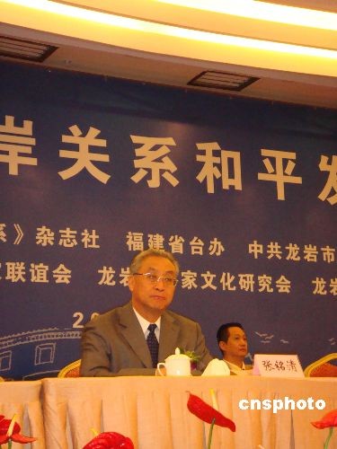 11月13日上午,“客家文化與兩岸關(guān)系和平發(fā)展研討會(huì)”在“客家祖地”福建龍巖開(kāi)幕。圖為海峽兩岸關(guān)系協(xié)會(huì)副會(huì)長(zhǎng)、兩岸關(guān)系雜志社社長(zhǎng)張銘清出席研討會(huì)。中新社發(fā) 黃翔 攝