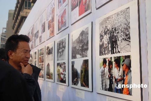 208年11月14日,時(shí)尚30年圖片展在杭州開幕,30多幅黑白老照片讓眾多市民回憶起小時(shí)候的生活場景,同時(shí)大學(xué)生也著各時(shí)代的時(shí)裝前來捧場。中新社發(fā) 引煒 攝