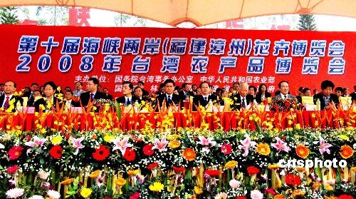 十一月十八日,以“花開兩岸 合作雙贏”為主題,第十屆海峽兩岸(福建漳州)花卉博覽會在福建漳州花博園隆重開幕。全國人大常委會副委員長、民盟中央主席蔣樹聲,十屆全國政協(xié)副主席張克輝,福建省政協(xié)主席梁綺萍,農(nóng)業(yè)部副部長危朝安,全國人大常委會委員、民盟中央副主席索麗生,福建省委常委、常務(wù)副省長張昌平,中國國民黨副秘書長張榮恭等來自兩岸三地、海內(nèi)外嘉賓近三千人出席本屆海峽兩岸花卉博覽會開幕式。中新社發(fā) 劉可耕 攝
