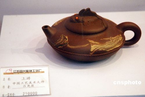 2008年11月18日,福建武夷山第二屆海峽兩岸茶業(yè)博覽會(huì)上,來自江蘇宜興售價(jià)高達(dá)250000元的天價(jià)紫砂壺吸引了許多紫砂壺愛好者前來觀賞。中新社發(fā) 張 斌 攝