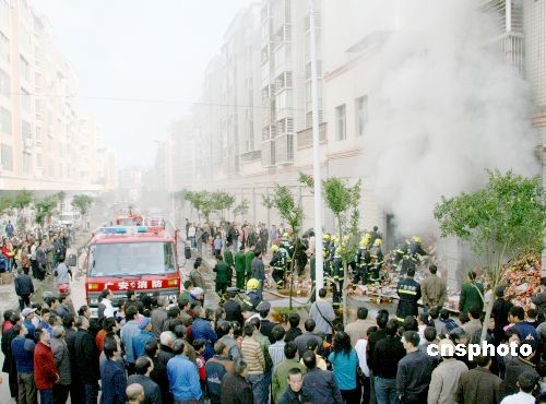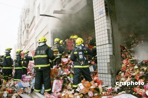 11月19日中午11點45分許,四川省廣安市 “康師傅”方便面廣安地區(qū)總代理的倉庫里價值60多萬的貨物被無情大火燒掉大半。事發(fā)后,廣安區(qū)公安分局110巡警大隊、市區(qū)消防大隊第一時間趕到現(xiàn)場,開展了滅火工作。據(jù)了解,失火的兩個門市面積大約有100平方米,里面裝了60多萬元的貨物,這次損失至少達40萬元左右;馂脑蛘谡{(diào)查之中。中新社發(fā) 廣宣 攝