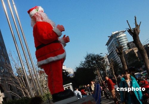 11月20日,可愛的“圣誕老人”北京街頭為來往的路人唱歌跳舞。雖然離圣誕節(jié)還有一個(gè)多月,但是北京的圣誕氣氛漸濃,許多商家開始裝飾門面,迎接“購物季”的到來,一場(chǎng)圣誕商戰(zhàn)正在悄然打響。中新社發(fā) 鄭雄增 攝
