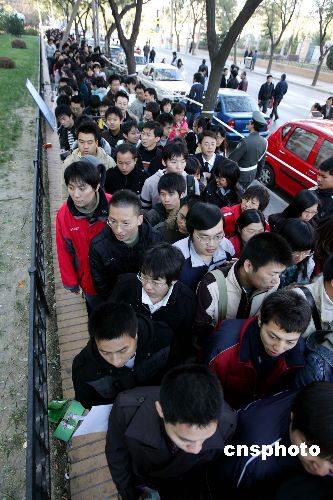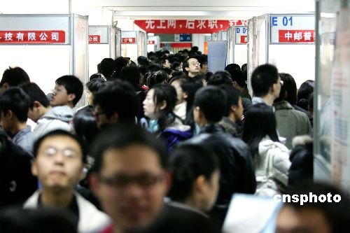 圖:北京人才招聘會爆滿 學(xué)子排長龍求職