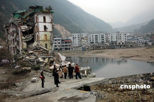 “5 12汶川大地震”發(fā)生后,因唐家山堰塞湖、“9 24”泥石流的洗劫,北川老縣城遺址發(fā)生很大變化,初冬時節(jié),人們經(jīng)過特批來到北川老縣城,參觀唐家山堰塞湖經(jīng)過這里的痕跡。中新社發(fā) 肖龍聯(lián) 攝