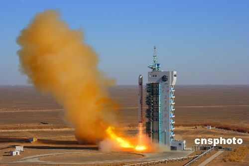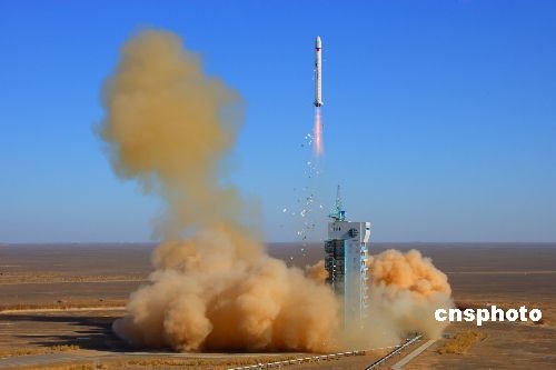 12月1日12時42分,中國在酒泉衛(wèi)星發(fā)射中心用“長征二號丁”運(yùn)載火箭將“遙感衛(wèi)星四號”成功送入太空。中新社發(fā) 許海晗 攝