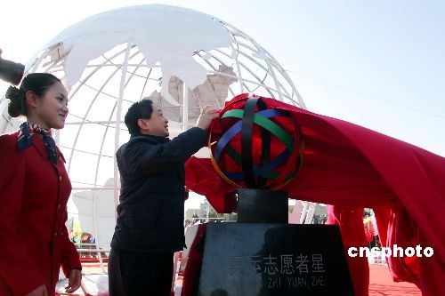 12月5日,北京奧運(yùn)會(huì)后的首個(gè)國(guó)際志愿者日,奧運(yùn)志愿者星正式揭幕。 為表彰志愿者為北京奧運(yùn)會(huì)、殘奧會(huì)的成功舉辦作出的突出貢獻(xiàn),激勵(lì)更多人士加入志愿服務(wù)行列,經(jīng)國(guó)際天文學(xué)聯(lián)合會(huì)小天體命名委員會(huì)批準(zhǔn),國(guó)際永久編號(hào)第18639號(hào)小行星被命名為“奧運(yùn)志愿者星”。中新社發(fā) 富田 攝