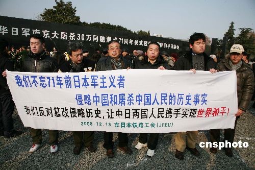 13日上午10時(shí),凄厲的警報(bào)在南京城上空拉響,江蘇省暨南京市各界代表以及海內(nèi)外和平友好人士近5000人在侵華日軍南京大屠殺遇難同胞紀(jì)念館舉行集會(huì),悼念南京大屠殺30萬(wàn)同胞遇難71周年,日本和平友好人士應(yīng)邀參加。中新社發(fā) 鐘山 攝