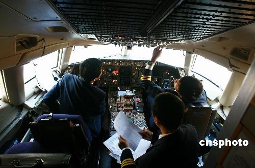 上海航空公司執(zhí)飛的兩岸常態(tài)化包機上航首個航班,12月15日準點從浦東國際機場起飛,并于當(dāng)天上午安全降落在臺北松山機場。上航首個常態(tài)化直航包機航班,采用雙機長制,確保飛行安全、平穩(wěn)和乘坐舒適。中新社發(fā) 夏本建 攝