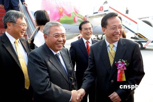 十二月十五日下午,一架蝴蝶蘭彩繪機(jī)降落深圳寶安國際機(jī)場,中華航空公司成為兩岸常態(tài)包機(jī)中首家抵達(dá)深圳航點(diǎn)的臺灣航空公司,深圳市政府副市長張思平在機(jī)場迎接華航董事長魏幸雄一行。中新社發(fā) 陳文 攝
