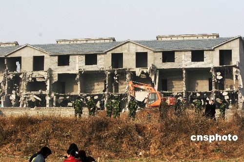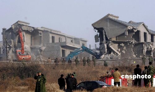 12月17日上午,備受社會關(guān)注的河南洛陽龍門石窟西山違法別墅群被當(dāng)?shù)卣畯娭撇鸪=,國?nèi)部分媒體公開報道了河南洛陽龍門石窟所在的龍門西山出現(xiàn)29棟違法別墅群的情況。洛陽市委、市政府高度重視,立即成立調(diào)查組迅速查處,認(rèn)定該別墅群屬違法建筑物,依法予以強制拆除。中新社發(fā) 張曉理 攝