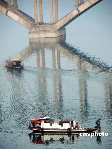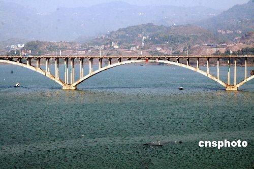 12月21日拍攝的重慶市云陽縣雙江大橋“長虹臥波”景象。最近10多天來,三峽壩前水位保持在169.5米左右,距離最高水位尚差5米多。但該大橋的主墩露出水面已不足3米。在三峽工程經歷135米、156米、175米三次蓄水之后,這座昔日曾經“高高在上”的移民復建大橋顯示出橫臥小江的“限航之虞”。 中新社發(fā) 饒國君 攝