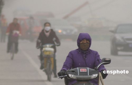 12月21日,哈密街頭行人在浮塵中行進(jìn)。當(dāng)日,新疆哈密遭遇罕見的浮塵天氣,浮塵造成空氣質(zhì)量和能見度下降,給人們出行帶來不便。中新社發(fā) 蔡增樂 攝