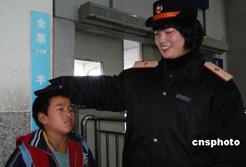2008年12月25日,蘇州火車(chē)站更換了一批兒童票身高標(biāo)識(shí)牌。據(jù)了解,從12月21日起鐵道部決將乘坐火車(chē)時(shí)購(gòu)買(mǎi)兒童半價(jià)票的參照身高標(biāo)準(zhǔn)調(diào)整為1.1米至1.5米。相比原來(lái)1.1米至1.4米的標(biāo)準(zhǔn),新標(biāo)高的上限高出了10厘米。中新社發(fā) 朱子寒 攝