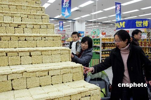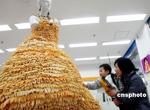 12月25日,中央美術(shù)學(xué)院實(shí)驗(yàn)藝術(shù)系在北京望京的某商場推出主題為“超級(jí)食品”的實(shí)驗(yàn)藝術(shù)展覽暨體驗(yàn)活動(dòng)。18名年輕的藝術(shù)創(chuàng)作者展出自己利用食品材料創(chuàng)作的藝術(shù)作品,作品形式涉及繪畫、攝影、雕塑、裝置等不同門類。他們針對食品的概念提出許多新穎的見解,并通過具體的視覺形式將這些有趣的思考呈現(xiàn)出來。中新社發(fā) 富田 攝
