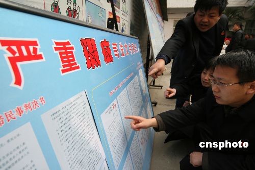 12月25日,法官在觀看有嚴(yán)重瑕疵的司法文書制成的展板。當(dāng)日,為維護(hù)法院生效裁判文書的嚴(yán)肅性,提高法院的審判質(zhì)量、司法文書制作水平,該市魏都區(qū)人民法院將本省近年來存在嚴(yán)重瑕疵的司法文書制成展板作為反面教材,在法院內(nèi)部進(jìn)行展示,教育廣大法官引以為戒,舉一反三,對照檢查自己在工作中存在的不足。中新社發(fā) 牛書培 攝