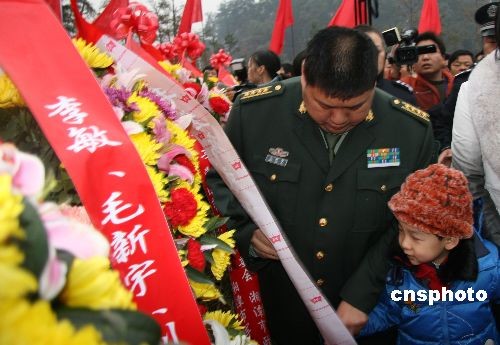 12月26日是毛澤東誕辰115周年紀(jì)念日。當(dāng)天,毛澤東的孫子毛新宇帶著兒子毛東東在韶山出席了相關(guān)紀(jì)念活動,并給毛澤東銅像敬獻(xiàn)花籃。中新社發(fā) 鄧霞 攝