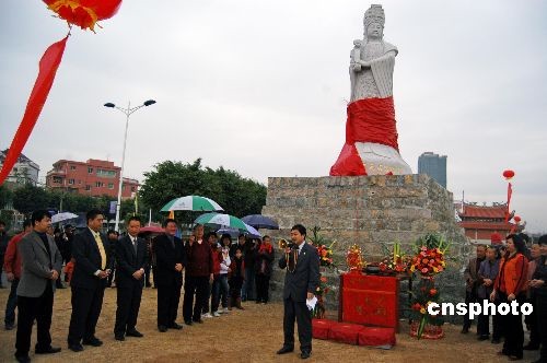 十二月二十七日,臺(tái)灣鹿港天后宮敬贈(zèng)媽祖神像揭彩儀式在福建泉州霞洲媽祖宮舉行。由臺(tái)灣鹿港天后宮專門敬贈(zèng)的一尊高五米、底座三米的媽祖神像,放置在霞洲媽祖宮外,供善男信女朝拜。霞洲媽祖宮迄今有近四百年的歷史,在政府撥款三百七十萬(wàn)元人民幣重建媽祖宮的過(guò)程中,得到了眾多海外僑胞特別是臺(tái)灣同胞的慷慨解囊。中新社發(fā) 傅丹丹 攝