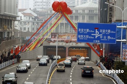 12月28日,武漢長江隧道建成試通車。武漢長江隧道位于武漢長江大橋和長江二橋之間,全長3.6公里,雙線4車道。該工程2004年11月破土動(dòng)工,是我國第一條開建、最先貫通的長江公路隧道。調(diào)試運(yùn)行期3個(gè)月,每天運(yùn)行18個(gè)小時(shí),2009年3月至2010年3月為試運(yùn)行期,2010年4月正式通車。中新社發(fā) 張 暢 攝