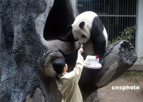 5.12汶川大地震使四川臥龍大熊貓中心受到嚴(yán)重破壞,首批四只“災(zāi)區(qū)熊貓”被疏散安置到福州熊貓世界,經(jīng)過(guò)半年的治療休養(yǎng)已適應(yīng)了福州生活,身體與精神狀態(tài)逐步恢復(fù)到震前情況。為了讓“災(zāi)區(qū)熊貓”過(guò)好新年,2008年12月28日 ,福州熊貓世界舉行了主題為“災(zāi)區(qū)熊貓,新年好”的熊貓和諧世界活動(dòng)紀(jì)念月活動(dòng),讓更多市民一起來(lái)關(guān)愛(ài)災(zāi)區(qū)大熊貓。中新社發(fā) 張 斌 攝