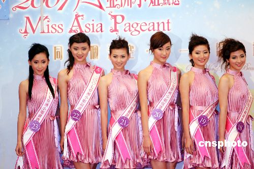 10月23日,入圍2007亞洲小姐競(jìng)選總決賽的23名佳麗在香港登臺(tái)亮相,與大會(huì)評(píng)判團(tuán)會(huì)面。由香港亞洲電視舉辦的2007亞洲小姐競(jìng)選總決賽將在28日晚舉行。中新社發(fā) 洪少葵 攝