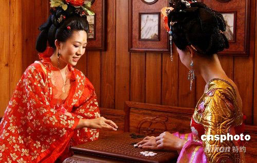 “國慶黃金周”之際,2008世界亞裔小姐大賽系列活動在北京進(jìn)行展示,賽事活動以中國文化和中國元素為表現(xiàn)主題,演繹“唐風(fēng)宋雅”女性風(fēng)采,通過展示中國盛唐時期的服飾美和造型美,從一個側(cè)面反映中國女性“浸于史、潤于知、融于德、成于韻”的獨特氣質(zhì)與內(nèi)涵,選手盛裝出境,在中國古典家具的映襯下,分別從琴、棋、書、畫四個方面完美演繹了一幅幅頗具文化氣息的傳統(tǒng)仕女生活圖。中新社發(fā) 錢興強(qiáng) 攝