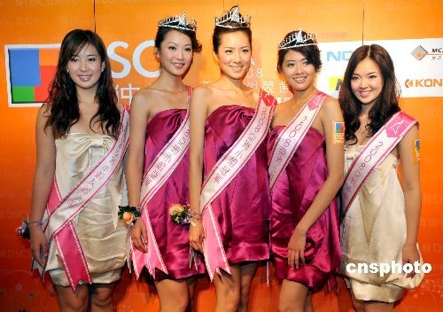 十二月十二日,二零零八亞洲小姐冠軍姚佳雯(中)、亞軍顏?zhàn)臃?左二)、季軍賴(lài)琳恩(右二)及兩位友誼小姐姚鳳鳳(左一)、林淑蓉(右一)在香港出席二零零八亞洲小姐贊助商舉行的頒獎(jiǎng)活動(dòng)。中新社發(fā) 鄧慶樂(lè) 攝