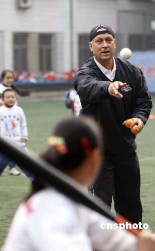 10月30日,入選棒球名人堂的前美國(guó)職業(yè)棒球運(yùn)動(dòng)員卡爾·瑞普金在北京西單小學(xué)教小學(xué)生打棒球。這是他以美國(guó)國(guó)務(wù)院派遣的美國(guó)公共外交特使的身份進(jìn)行的首次出訪。瑞普金將訪問(wèn)北京、上海和廣州,在這三個(gè)城市中,瑞普金將與青少年進(jìn)行接觸,相互進(jìn)行文化交流,同時(shí)為更多的新手講解棒球運(yùn)動(dòng)?·瑞普金是棒球運(yùn)動(dòng)有史以來(lái)空前的鐵人紀(jì)錄保持者,也是美國(guó)棒球名人堂成員之一。他是棒球史上僅有的取得400次本壘打和擊中3000次的八位知名球員之一。2007年7月29日,他以史上最高得票數(shù)入選美國(guó)棒球名人堂。 中新社發(fā) 杜洋 攝