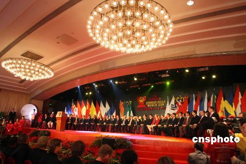 十一月二十一日,二〇〇七歐米茄觀瀾湖高爾夫世界杯開幕式在深圳觀瀾湖東莞會(huì)所舉行,來(lái)自二十八個(gè)國(guó)家五十六名球手齊聚觀瀾湖展開高爾夫世界杯的角逐。中新社發(fā) 陳文 攝