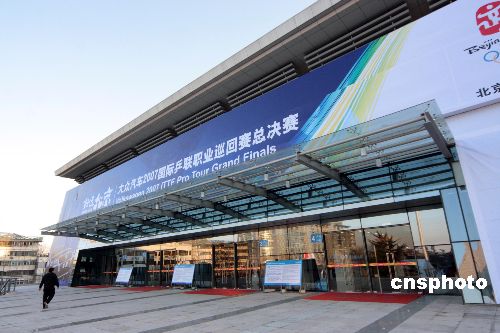 12月13日,新近落成的北京大學(xué)奧運(yùn)乒乓球館迎來“好運(yùn)北京”2007年ITTF職業(yè)巡回賽總決賽。奧運(yùn)乒乓球館可提供固定與活動座位共7557座,其中位于首層的比賽場地長47米,寬39.5米,最多可布置8張乒乓球臺同時進(jìn)行比賽。放入活動座椅后,賽場變?yōu)殚L27米,寬20米,可放置2張乒乓球臺進(jìn)行比賽。中新社發(fā) 吳芒子 攝