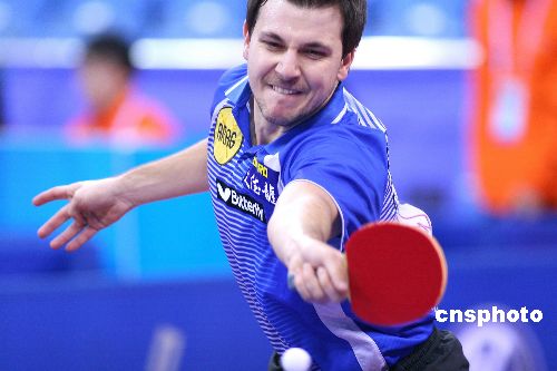 12月15日,2007年國際乒聯(lián)職業(yè)巡回賽總決賽男子單打1/4決賽在北京大學(xué)體育館進行。在東道主選手馬琳與德國悍將波爾的較量中,馬琳歷經(jīng)六局苦戰(zhàn),最終4-2力克波爾。中新社發(fā) 富田 攝