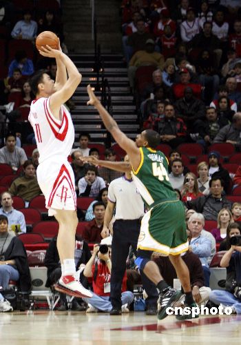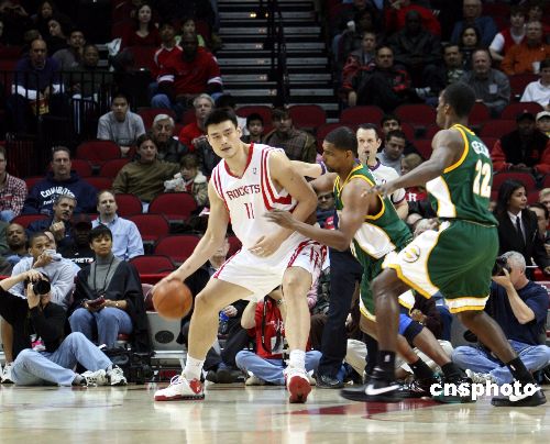 火箭1月21日在主場(chǎng)迎來(lái)兩連勝,姚明發(fā)揮出色,全場(chǎng)獲得30分17個(gè)籃板另有四個(gè)封蓋。中新社發(fā) 楊晉生 攝