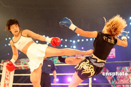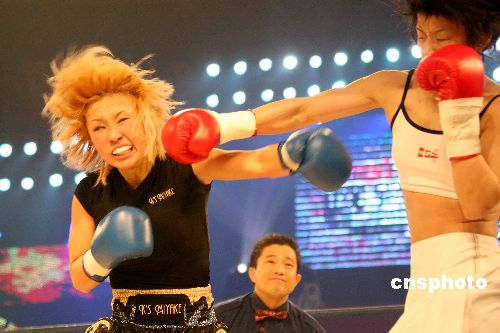 1月26日,河南電視臺2008《武林風(fēng)》第二屆環(huán)球拳王爭霸賽在洛陽打響。 來自日本、葡萄牙、巴西、韓國、伊朗5個國家的7名不同膚色、不同打法、不同級別的搏擊高手挑戰(zhàn)中國功夫。中新社發(fā) 曾憲平 攝