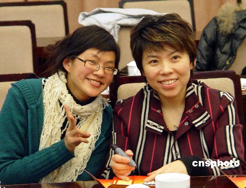 1月30日,奧運冠軍鄧亞萍、葉喬波出席一項以“攜手海峽·走近奧運”為主題的臺灣大學(xué)生冬令營閉營式。鄧亞萍在北京奧運賀年卡上為臺灣大學(xué)生簽名留念。兩位知名運動員當天與臺灣同學(xué)們討論奧運場館建設(shè),力薦北京各類特色建筑。中新社發(fā) 劉舒凌 攝