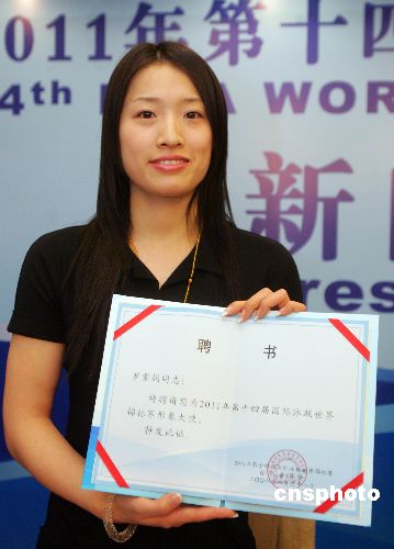 1月31日,泳壇名將羅雪娟成為2011年第14屆國(guó)際泳聯(lián)世界錦標(biāo)賽形象大使。當(dāng)日,2011年第14屆國(guó)際泳聯(lián)世界錦標(biāo)賽組委會(huì)在上海正式成立,此舉標(biāo)志著將于2011年7月在上海舉行的該項(xiàng)賽事的籌備組織工作正式啟動(dòng)。中新社發(fā) 湯彥俊 攝