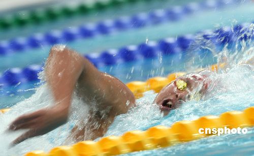2月3日,“好運北京”2008年中國游泳公開賽在北京國家游泳中心“水立方”進行了6個項目的決賽,在男子1500米自由泳決賽中,中國選手張琳以15分05秒57的成績輕松奪金。中新社發(fā) 盛佳鵬 攝
